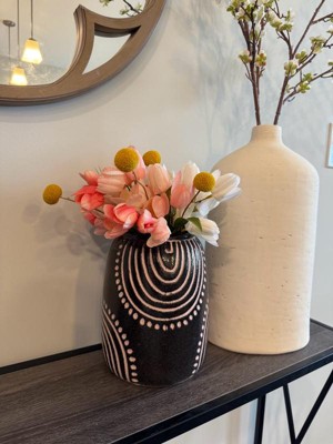 [This review was collected as part of a promotion.] This vase is a standout piece with its striking black-and-white pattern and glossy finish. It adds the perfect modern-boho touch to my space and looks great with both fresh and faux florals. Sturdy, stylish, and totally eye-catching.