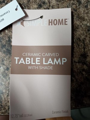 [This review was collected as part of a promotion.] SIMPLE HOME - Simple Home 12.75" Ceramic Carved Table Lamp with Shade Is perfect for a small space or hall it’s small w enough for side tables, nightstands or console table, with a simple design and neutral color will fit well with most surrounding decor.