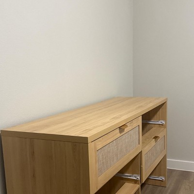 【Ample storage space】 With 6 large drawers, each capable of holding 25+ T-shirts or 15+ pairs of pants, our rattan dresser provides plenty of storage for all your daily needs. It's perfect for use as a bedroom dresser or as a TV stand in your living room.