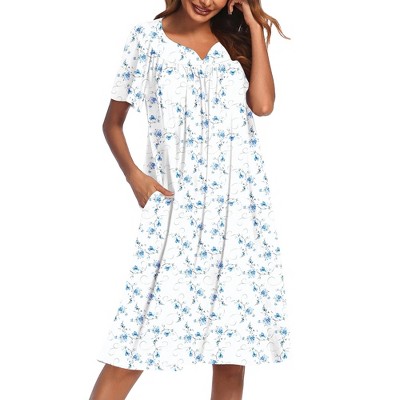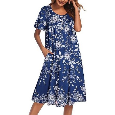 Ekouaer Womens House Dress Floral Print Moo Moos Nightgowns Moomoo Dresses Mumus with Pockets Floral Blue L