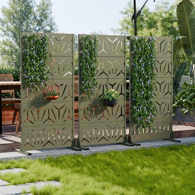 PexFix 60"H x 30"W Outdoor Privacy Screen Metal Privacy Screen with Stand Freestanding Room Divider Decorative Privacy Fence with Slatted Design