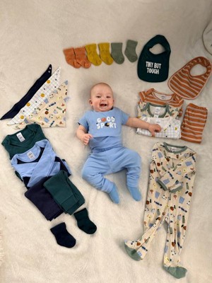 [This review was collected as part of a promotion.] This gift box is perfect for a baby shower or gift in general! It has everything you need clothing wise. I love this box for my twins because there are multiple of each item and they can mix and match! The bibs are super soft. The outfits are 100% cotton so you do have to be careful washing and shrinking. The only item we didn’t love was pj onesie. The fit in the zipper was weird and felt super tight in the leg area.
