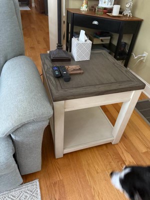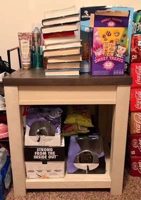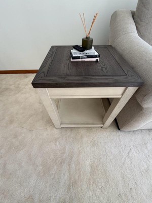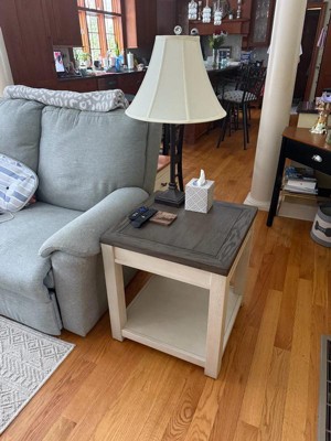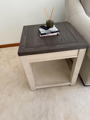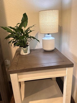 ROME + OAK Tate Farmhouse Wood End Table with Shelf, Weathered Brown and Cream