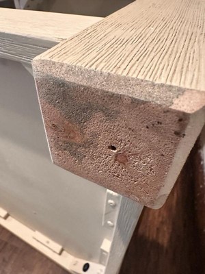 [This review was collected as part of a promotion.] Shocked! This is a lovely weathered brown, that’s not TOO brown. It’s more of a dark dark gray brown, and I’m okay with that! It’s sturdy, heavy, and very very easy to assemble. It was delivered a little scratched but none of the chips or scratches show when the table is standing. Super cozy color and look. Love it!