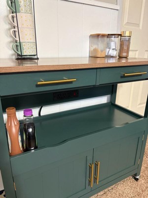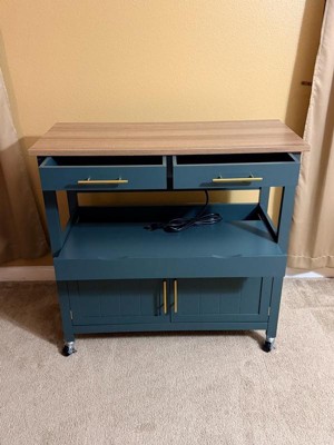 [This review was collected as part of a promotion.] I am in love with this!!! I thought it was going to be black but this color is amazing. I didn’t use the wheels because it looks better without but Im so pleased. The Cabinet’s work great and are smooth when opening and closing. I love that it has its own outlets that allow for easy appliance use and the storage is great. I told my sister to buy one for her kitchen.