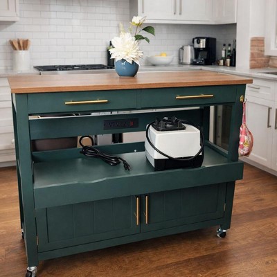 [This review was collected as part of a promotion.] I received the Better Choice 36in Large Rolling Kitchen Island Cart, 2 door cabinet, outlet and wheels complimentary for my honest review. This is a very pretty island. It has ramped up our hosting space! It is made with quality and design in mind. I received the green with gold finishes and it is sleek and modern. I really love the paint color and accents. It looks very smooth and well made. The best part about this island is the versatility. The top is made of durable wood that you can use for cooking, chopping foods, storing items like drink mixes. It’s very spacious and gives you room to do many activities. It has a pull out shelf that is perfect for storing small appliances. It can fit 2-3 depending on the size. The best part is the added electrical outlet that has 3 ports. You can plug in appliances and move around with them without having to unplug and ice them with you. This is absolutely perfect for us as we host as we can bring the island around the room. The functionality with the wheels is a game changer. You don’t have to keep the is stationary. The wheels lock in place when not in use to give it extra security. It also has two pull out drawers to store smaller items like utensils. The draws pull out slow and click in place which keep them sturdy. It also has a very spacious open cabinet at the bottom. There is a lot of room in here for storage. The doors click to a magnet for security and give you so much added space! There are also 3 hooks on the side to put up utensils or cloths. I definitely recommend assembling this with two people. I did this by myself and it took a few hours. The instructions are pretty easy to follow but there are many steps and it is definitely better as a two person job but not impossible with one person. This island is stylish and modern. It is designed with space and convenience in mind. It has so many storage features! It is perfect if you want the benefits of an island that can be mobile. I love it!