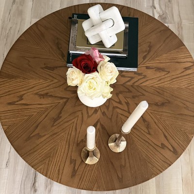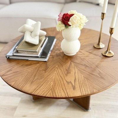 This coffee table is absolutely beautiful and instantly elevates the space. The tabletop has very unique wood patterns that feel natural yet refined, making it a true statement piece. The floor stand base is very well designed, solid, elegant, and visually balanced, which gives the table a high end look. In addition to its beauty, it feels sturdy and well crafted, not flimsy at all. It’s the kind of piece that draws compliments and blends effortlessly with both modern and classic décor.