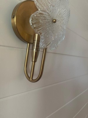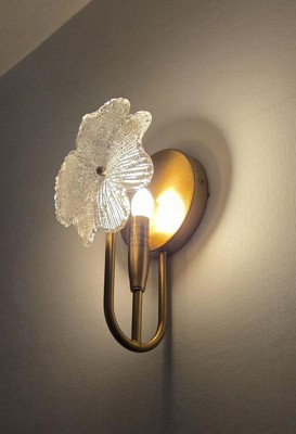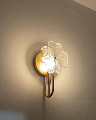 Maxax 5.75" Glass Wall Sconce, Modern Elegant Floral Wall Lamp for Hallway, Bedroom, Plated brass