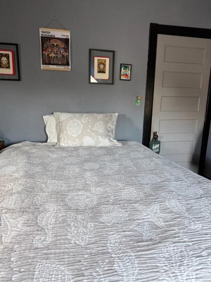 [This review was collected as part of a promotion.] This is such a beautiful set that adds the special touch to my guest room! It’s ocean themed and no cover or comforter was catching dog my eye until I saw this one. I love the buttons to open the cover, I like this style a lot more than a zipper. My only drawback is it’s a bit bigger than I was expecting. Otherwise it’s perfect!