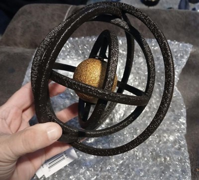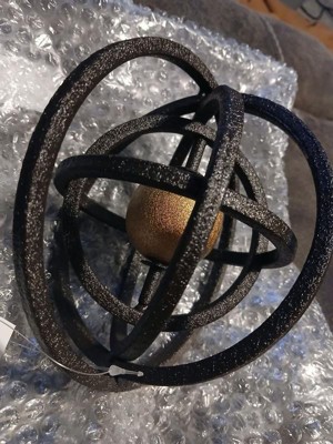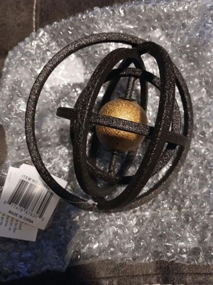 Rustic Metal Orb for Home Decor - Modern Figurine Sculpture for Bathroom Counter, Office, and Living Room Decor - 6", Black & Gold
