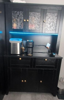 This is an expensive item for the quality you receive. There were multiple scuffs, excess glue that seemed to be wiped off and left smudges that can't be cleaned off. The doors and drawers don't line up very well.