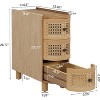 Lantine 3-Drawer Rattan End Table: Slim sofa side table with vintage embossed handles, for living room/bedroom. FiniMDF, no assembly, Oak finish.