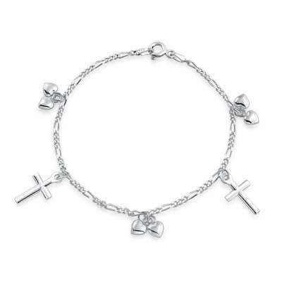 - Add radiant, spiritual flair to your style with this lustrous and sentimental, sterling silver rosary bead bracelet. A delicate, Christian style cross dangles at the focal point, finished in gleaming sterling silver.