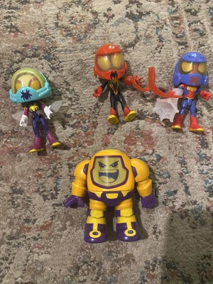 [This review was collected as part of a promotion.] My little one absolutely loves the spidey and his amazing friends TV show so these toys were a big hit! 3 spiderman characters with helmets and spider webs as well as a "bad guy". The only thing I would say is that the helmets should fit all the characters to mix and match but they only work with one of the spiderman characters.