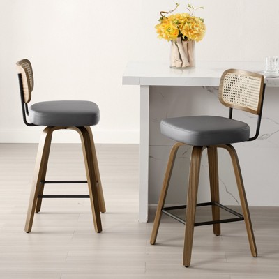 Bekrvio 26" Counter Height Swivel Counter Bar Stools Set of 2, Faux Leather Chairs with Back & Bentwood Frame,Mid-Century Kitchen Island Stools,Griege
