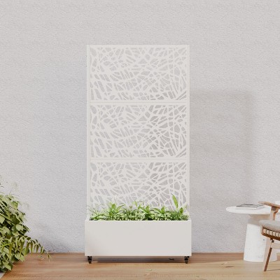 PexFix Outdoor Metal Planter Box with Privacy Screen Freestanding Decorative Fence Planter Modular Raised Garden Bed with Trellis