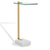 Introducing the Idris Marble Base Drink Table, a stunning addition to any living space. This elegant piece, with its white and gold finish, effortlessly combines style and functionality. Crafted from durable metal, smooth marble, and sleek glass, it serves as the perfect spot to rest your favorite beverages or display decorative items.