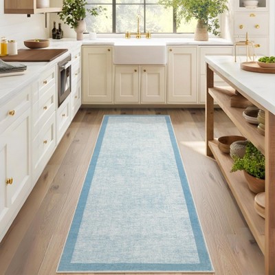 2x6 Living Room Rug Blue Camel, Modern Abstract Washable Area Rug with Non Slip Backing, Stain Resistant Low Pile Indoor Carpet for Bedroom Office