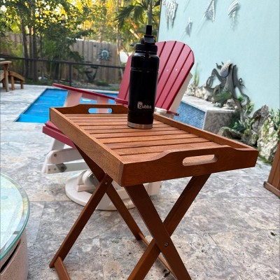 Costway Patio Solid Wood Tray Table w/ Removable Top Rectangular TV Tray Bistro Table