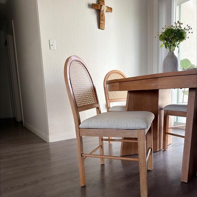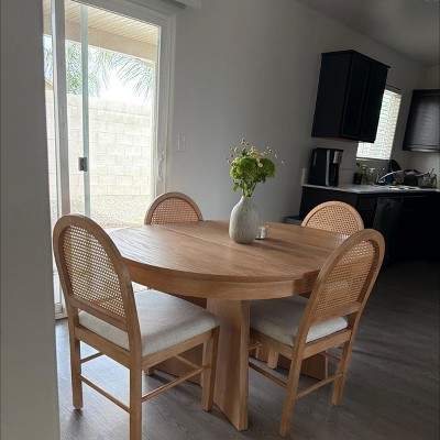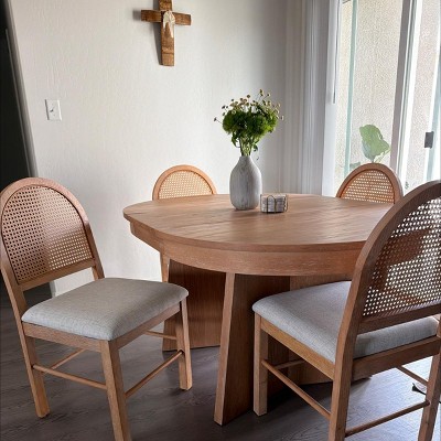 Whisen 5-Piece Round Dining Table Set for 4, Retro Extendable Dining Table Set with 4 Upholstered Chairs, Kitchen Table - Walnut & Beige