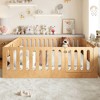 ModernLuxe Wood Montessori Floor Bed for Kids, Queen Size Low Profile Floor Bed Frame with High Guardrails & Built-in Door, Natural