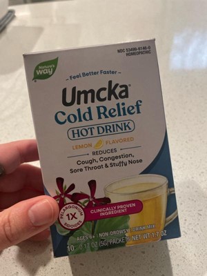[This review was collected as part of a promotion.] Nature’s way Umcka cold relief hot drink with lemon flavored is so good it helps me the cough and it is also test so good. It is natural ingredients and also clinically proven ingredient. I recommend it.
