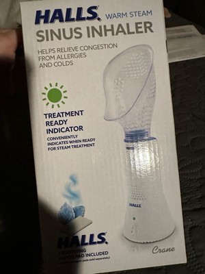 Relieve sinus congestion with the Crane x HALLS® Corded Steam Inhaler. The steam inhaler emits soothing warm mist to relieve the effects of dry air and help ease coughing and congestion. It comes standard with a comfortable mask, is compact, easily portable, and user friendly.
