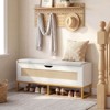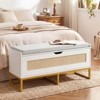 Costway 39.5” Rattan Storage Chest with Padded Seat, Flip-Top and Safety Hinges for Bedroom Gold and White