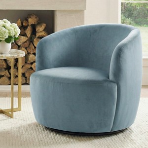Modern Blue Velvet Swivel Accent Chair, Upholstered Barrel Chair with 360° Rotation, Lounge Chair for Living Room & Reading Corner-Panipeachy
