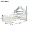 ModernLuxe Full Size Wooden House Bed with Storage Headboard, Solid Pine Kids Bed Frame with Guardrails, White