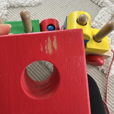 Hello! Thank you for taking the time to comment on the Stacking Train Toddler Toy . We take the quality of our toys very seriously and are so sorry to hear about your experience. One of our product support specialists will contact you to get some additional details. Your friends at Melissa and Doug