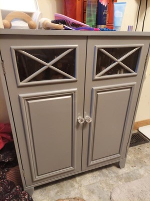 [This review was collected as part of a promotion.] I love this Teamson Home Dawson Floor Storage Cabinet with 2 Doors! It was very easy to assemble, it’s very sturdy, it has plenty of storage area on the three shelves, and the color paint is very smooth and even with a clear top coat of paint making it resistant to water marks on top and scratches. The tempered glass in the little windows is a nice touch making it look expensive.