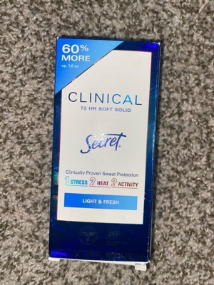 [This review was collected as part of a promotion.] high demand, highly recommended secret clinical light an fresh smells so good an it actually works, i have bought more