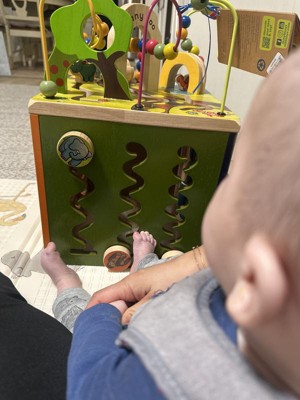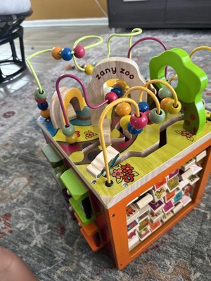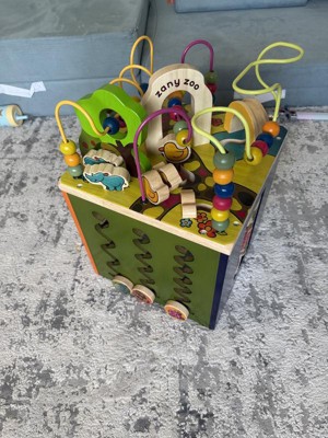 B. toys Wooden Activity Cube - Zany Zoo: Educational Play with Animals, Spinners, Bead Rollercoaster, Functional Doors
