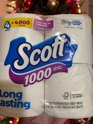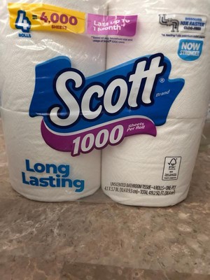 Scott 1000 Septic-Safe 1-Ply Toilet Paper - 4 Rolls: No Fragrance Added, Non-Toxic, 1000 Sheets Per Roll