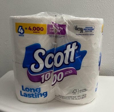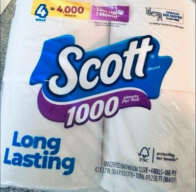 - 4 rolls of Scott 1000 Toilet Paper, 1-ply, 1000 sheets per roll