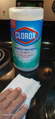 [This review was collected as part of a promotion.] I love Clorox Disinfecting Cleaning Wipes in Fresh Scent. I use them in the kitchen and bath every day. It dries quickly. The texture of the wipe is great of snapping up minute pieces of debris.