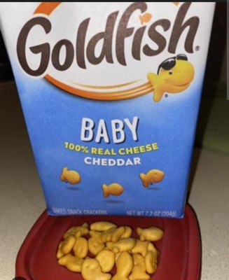 [This review was collected as part of a promotion.] Loveeeeeeeeeeeee the tiny goldfish snacks. They are great for small fingers and small mouths. My baby loves eating this and snacking on this stuff all the time. These are easy to pack and bring along on different trips and outtings.