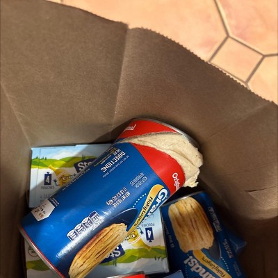 Bottles of soda were placed on top of the biscuits. Needless to say the tube popped open. Not pleased since they were for a lunch the next day. Wrapped it up . Lost two biscuits .