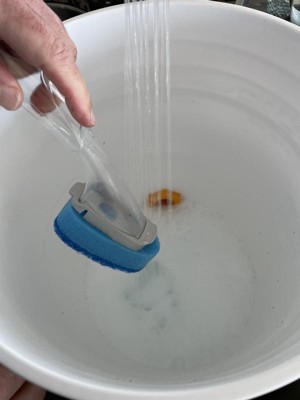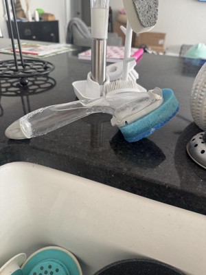 [This review was collected as part of a promotion.] this nonscratch head is perfect for cleaning nonstick pots and pans... it has a scrubber as well which works without scratching... the handle hold detergent for a fast and efficient clean the best for me was.... i used it perfectly on my glossy black kitchen cabinet doors to get the water marks and grime and finger prints off them ...without scratching them 😄
