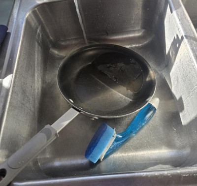 [This review was collected as part of a promotion.] Using the Scotch-Brite™ Non-Scratch Dishwand with a refillable sponge head it is very easy to clean up your non-stick skillets and pans. There is no worries of ruining the surface coatings and makes cooking clean up a breeze!