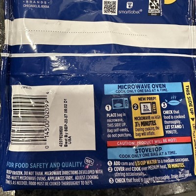 These were my go to for a quick veggie to add to dinner. In the past couple of months I noticed that it said “NEW” on the bag. I wondered what could be new about corn in a bag? The directions now say to cook 3 & 1/2 min instead of 4 1/2. THE CORN IS NOT COOKED & the corn tastes “chewy” and mealy. I thought I got a bad bag. NOPE. I had 2 other bags in my freezer so we tried another bag… SAME COLD CORN. It’s not even a little warm! I came here to see if anyone else had experienced this and I am NOT alone. I think there are bigger problems if Birdseye thinks we can’t wait 1 more minute for corn to cook. I have one more bag of REGULAR BIRDSEYE CORN - not steam in bag. If that corn tastes like the others then it’s BYE BYE BIRDSEYE. (I did let them know but nothing was mentioned about WHY, they just are sending me a free coupon)
