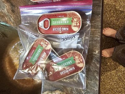 Damaged when examend / opened , Exploded, King anchovies caned.