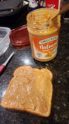 [This review was collected as part of a promotion.] This is a delicious and natural peanut butter from Smuckers! It wasceasy tp stir and easy to spoon right out of the jar for snacking, sandwiches, smoothies, etc. It has a great taste and the perfect hint of salt. The glass jar ensures that the peanut butter stays as fresh as possible.