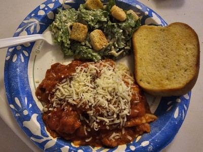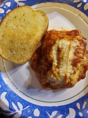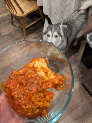 I guess the product defrosts enough in transit or stores to slide all the sauce to one side of the package when it gets stood on its side instead of lying flat, so the top half of my lasagna was mostly just noodles, which got dried out in the oven and came out chewy like rubber. The other half tasted fine but while the “party size” should have been plenty, there was not even enough “good” edible lasagna to go around. We had to go get fast food for the kids and a couple of hungry adults.