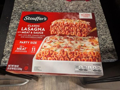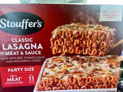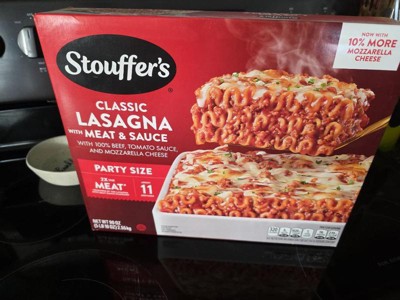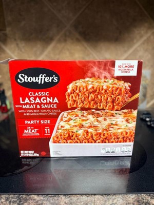 • SERVE UP COMFORT WITH EVERY BITE: Gather around the table with your loved ones when you serve Stouffer’s Party Size Lasagna with meat & sauce. It’s a crowd-pleasing dish that will turn dinnertime into a joyful moment