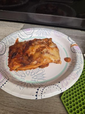 [This review was collected as part of a promotion.] The party size lasagna is huge! This was more than enough to feed our family with a small amount of leftovers as well. The instructions were easy to follow and it cooked up nicely. I do suggest placing a pan underneath because it does spill a little in the oven. The flavor was mild so we added seasonings to enhance it. The there's a good amount of sauce and cheese included with not as much meat. Overall this is a good value for the convenience of simply popping it in the oven.