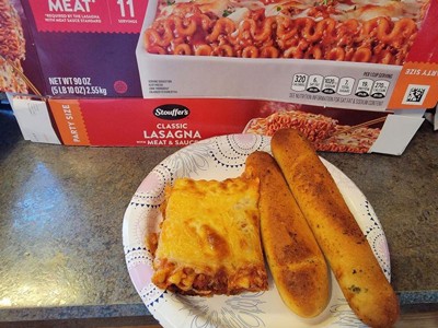[This review was collected as part of a promotion.] Stouffers family size lasagna with meat & sauce is the perfect go to dinner when you want something yummy and quick! The size is perfect for a family of 4. The taste is great. I definitely recommend trying it out.