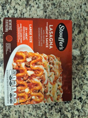 [This review was collected as part of a promotion.] Stouffer's Lasagna with Meat Sauce is one of the best frozen entrees on the market. I tastes great and can be heated in the oven or microwave, making it a simple option for weeknights. The pasta is cooked perfectly, the sauce is flavorful, and it has just the right amount of meat. It's honesty better than some homemade lasagna I have had. The family size is great for me as a single guy because it will give me meals for the first half of the week. This stuff also re-freezes very well. If you dont finish it all in a few days, you can cut into servings, wrap in foil, and freeze for later use.