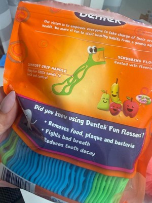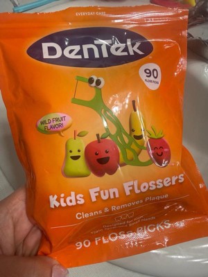 DenTek Kids' Fun Flossers Floss Picks - Wild Fruit - 90ct: Sugar-Free, Contains Fluoride, Nylon, 5.88" Length